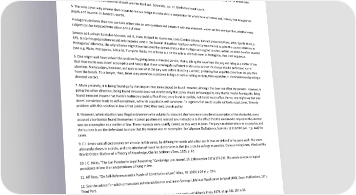 Paradox of Self-Amendment by Peter Suber Judge Putnam in State v. Jones (see Section 20.B) said that Protagoras stopped teaching Euathlus when he decided Euathlus was proficient. Euathlus protested that he was not finished; Protagoras then sued. The case did not go to a jury, but to a panel of judges who were so perplexed that they adjourned for 100 years. 3. See Aulus Gellius, Rinaldi, and Lenzen from note 2 above. See also E. Schneider, Logik für Juristen, Berlin, 1965, at p. 152; Ilmar Tammelo, Outlines of Modern Legal Logic, Franz Steiner Verlag, 1969, at pp. 122-23; John Bryant, "The Paradox of the Lawyers," Midwest Journal of Philosophy, 4 (1976) 1-2; W.K. Goossens, "Euathlus and Protagoras," Logique et Analyse, 20 (1977) 67-75; Raymond Smullyan, What is the Name of This Book? Prentice-Hall, 1978, pp. 213-14; Lennart Aqvist, "The Protagoras Case: An Exercise in Elementary Logic for Lawyers," in Wlodzimierz Rabinowicz (ed.) Tankar Och Tankefel, Uppsala, 1981, pp. 211-24. 4. Lenzen, op. cit., thinks Euathlus should win the third suit. Schneider, op. cit. thinks he should lose it. 5. The only other wily scheme that occurs to me is a design to make vivid a proposition for which he was famous and, indeed, that brought him pupils and income. In Seneca's words, Protagoras declares that one can take either side on any question and debate it with equal success —even on this very question, whether every subject can be debated from either point of view. Seneca ad Lucilium Epistulae Morales, vol. II, trans. Richard M. Gummere, Loeb Classical Library, Harvard University Press, 1953, Epistle 88.43, p. 375. Since this proposition would only become vivid in the lawsuit if Euathlus had been sufficiently well-trained to pose the counter-dilemma to Protagoras' dilemma, the wily scheme might have included the demonstration that Protagoras is a good teacher, a claim on which he often boasted (see e.g. Plato, Protagoras, 328.a-b). If anyone thinks this scheme is a bit too wily to attribute even to Protagoras, then I will acquiesce. 6. One might well have solved this problem by giving Jones a directed verdict, that is, taking the issue from the jury and ruling as a matter of law that that Harris was Jones' accomplice and hence that there is no legally sufficient evidence to sustain the charge that he performed Harris' abortion. Many judges, however, will wait to see what the jury says before directing a verdict, preferring that acquittal come from the jury than from the bench. To a lawyer, then, Jones may seem less a problem in logic or self-annulling verdicts, than a problem in the timeliness of granting a directed verdict. 7. More precisely, it is being found guilty that implies that Jones should be found innocent, although this does not affect the paradox. However, in going the other direction, being found innocent does not strictly imply that Jones should be found guilty, only that he may be found guilty. Being found innocent means that Harris's testimony could suffice if the jurors found it credible, not that it must suffice. Hence, one might say that only Jones' conviction leads to self-annulment, while his acquittal is self-consistent. To logicians that would usually suffice to acquit Jones. The only problem with this solution in law is that (under 1946 Ohio law) Jones is guilty! 8. However, when abortion was illegal and women who voluntarily procured abortions were considered accomplices of the abortionist, many accused abortionists found themselves in Jones' position and wanted jury instructions to the effect that the woman who requested the abortion was an accomplice as a matter of law. These requests were usually denied, as they were in Jones. The jury is to decide who is an accomplice, and the burden is on the defendant to show that the woman was an accomplice. See Wigmore On Evidence, footnote 12 to §2060 (vol. 7, p. 444) for cases. 9. C.I. Lewis said all dictionaries are circular in this sense, by defining the words with other words that are defined in the same work. The series ultimately closes in a circle, and one criterion of merit for dictionaries is that the circle be as large as possible. Clarence Irving Lewis, Mind and the World Order: Outline of a Theory of Knowledge, Charles Scribner's Sons, 1929, p. 82. 10. J.C. Hicks, "The Liar Paradox in Legal Reasoning," Cambridge Law Journal, 29, 2 (November 1971) 275-291. This article is more on logical paradoxes in law than on paradoxes of lying in law. 11. Alf Ross, "On Self-Reference and a Puzzle of Constitutional Law," Mind, 78 (1969) 1-24 at p. 19.n. 12. See the advice for witch-prosecutors in Heinrich Kramer and James Sprenger, Malleus Maleficarum (original 1486), Dover Publications, 1971, Third Part. 13. Richard Popkin, History of Skepticism from Erasmus to Spinoza, University of California Press, 1979, at pp. 181, 287.n.38. 14. "The FBI's Show of Shows," Time Magazine, 116, 9 (September 1, 1980) 14ff, at p. 19. 15. In chronological order the main articles are: Anon., "The Three-Cornered Priorities Puzzle," Virginia Law Review, 8 (1922) 550; White, "A Problem in Priorities," Ohio Law Reporter, 25 (1926) 116; Anon., "Priorities Between Mortgages and Mechanics Liens," Yale Law Journal, 36 (1926) 129; Orlo Kellogg, "Priorities Puzzle Under the Ship Mortgage Act," Washington Law Review, 2 (1927) 117-21; Anon., [Note on circular liens], Virginia Law Review, 15 (1928) 90; A. Kocourek, "A First Rate Legal Puzzle: A Problem in Priorities," Illinois Law Review, 29 (1935) 852; Benson, "Circuity of Lien —A Problem in Priorities," Minnesota Law Review, 19 (1935) 139; Anon., "Circuity of Liens —A Proposed Solution," Columbia Law Review, 38 (1938) 1267-78; Anon., [Note on circular liens], Harvard Law Review, 67 (1953) 358; Anon., "Circuity of Priority and Liens under Section 146