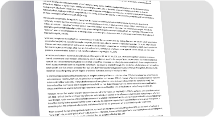 Paradox of Self-Amendment by Peter Suber Section 7: Hart's Theory of Acceptance A. Salient points from Hart's text Hart's theory of acceptance is complex. He can banish the specter of Ross's paradox only if he succeeds in arguing that acceptance and usage can confer legal status on new rules of change. This is equivalent to arguing that not all legal change occurs through inference-like transfers of authority from prior norms, or that the people and officials of a legal system can accept as law a self-amended AC that contradicts its predecessor. Hart undoubtedly urged his acceptance theory for different programmatic reasons than to make possible the legal change of the rules of change. But that he urged the theory at all allows him, within a systematic philosophy of law, to answer Ross and provide an alternative to immutability and paradox. This is not the place to assess every aspect of Hart's complex theory. But we should ask exactly what acceptance is. Hart defines acceptance primarily via negativa or by denying its identity with similar phenomena. One of Hart's first concerns in The Concept of Law is to show the inadequacy of John Austin's theory that laws are commands or coercive orders backed by threats given by a person or body whom the populace habitually obeys. Hart rejects almost every element of this theory, and therefore is careful to avoid identifying acceptance with habitual obedience or mere convergence of behavior (54ff, 73).[Note 1] He is equally concerned to distinguish his theory from the natural law tradition that makes the final validity of positive law depend on its conformity to moral law. Hence acceptance is not normative in the moral sense. It is independent of consent (168). It is normative only in that it reflects an attitude —called the "internal" point of view— that conduct is prescribed by rule rather than accidentally convergent. It avoids the descriptive position that looks only to public force, private feelings of obligation or compulsion (56, 85-86), and psychology (136), as well as the "external" point of view that sees rules as binding only on some other group that accepts them. It is not acceptance of a moral ideal, but only of legal authority (98, 198-99). Moreover, acceptance must differ from custom because, in Hart's theory, custom has no law-making effect until and unless it is itself recognized or accepted as law (44f, 98). Acceptance may be comprised, at least in part, of social pressure or expectation to conform (56, 84, 85, 165). But social pressure and expectation cannot be the whole story or else the distinction between law and morality would be blurred (165ff). Hart is proud of the fact that acceptance and usage, while they are distinct from habit, convergence of behavior, moral approval, custom, feelings, and mere social pressure, are nevertheless matters of fact, not of metaphysics or mystery (62, 101, 107). Acceptance validates or authorizes the ultimate rule of recognition (92, 93, 97, 106, 205, 229). The rule of recognition is accepted as common, shared, or communal to all members of the society, even if obedience is "each for his own part" (112-113). Acceptance also validates some other types of law, such as standards of judicial review (142), cases of first impression and other judge-made rules (149-50). These examples show that Hart's acceptance model does not require the authority of a law always to precede the law in time (see Section 6.C). Acceptance can, but need not, catch up with acts that precede or exceed their authority. Even when acceptance bypasses or overrules the rule of recognition, it makes law, not merely an excuse for putting up with illegality or a climate that makes any inquiry into legality futile. In primitive legal systems without secondary rules acceptance directly validates or authorizes all law (230). In international law, where there are some secondary rules but, Hart says, no general rule of recognition, he is less sure (230-31). However a "transition towards acceptance" is possible in international law today (231). If any rule of international law applies to a nation that does not assent to it (for example, by treaty), then international law must have a rule of recognition that so held; but Hart doubts that any rule binds nations without their assent and therefore doubts that there are any international legal rules that acceptance could validate even in the absence of a rule of recognition (230-31). However, he says that treaties bind only because rules external to the treaties say they bind (219, 231); he applies the same principle to contracts (42, 220). I will call this the irreflexive view of treaties and contracts, as opposed to the reflexive view that they bind ex proprio vigore or by their own strength. Hart's assertion of the irreflexive view would be vitiated if he believed that the external rule that validated treaties could be brought into effect merely by the agreement of the parties to a treaty. Yet he does not say whether it is validated by acceptance, a rule of recognition, or something else. The problem of reflexive and irreflexive validation will not go away and will be considered at greater length below. When accepted, the rule of recognition is made law, not merely an assumption, postulate, or hypothesis (105) and not merely a "pre-legal" or "meta-legal" rule, or mere "political fact" (108). Acceptance, therefore, does more than support law by assuring compliance and preventing revolt; it makes or defines law. Legal rules bind if and only if they are accepted as binding (226, 230). The rule of recognition is "fact" (107, 108) in that it exists only in the actual practice of officials (105, 106). The law made or defined by acceptance is not a brooding omnipresence, a prediction of future judicial behavior, or a formal ideality: it is fact and practice, an observable social reality. The rule of recognition is usually tacit (98) and is ascertainable only by empirical observation of the