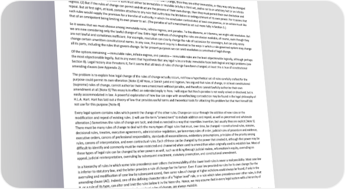 Paradox of Self-Amendment by Peter Suber Section 3: The Dilemma A. Self-application v. infinite regress Any legal philosophy that would explain how laws may lawfully be changed faces a dilemma. The authority to change legal rules is provided by a special group of legal rules which we may call (after Hart) rules of change. Rules of change permit and structure the process of enactment, amendment, and repeal. Can the rules of change permit and structure the process of their own change? More pointedly, can they authorize their own change into forms inconsistent with their original forms?[Note 1] Can they make their self-change irrevocable? The dilemma is sharp. (1) If the rules of change cannot authorize their own change, then they are either immutable, or they may only be changed by a second set of such rules, which in turn must either be immutable or mutable only by a third set, and so on to an arbitrary halt or an infinite regress. (2) But if the rules of change can permit and structure the process of their own change, then they must permit their own limitation and repeal. But at first sight, at least, paradox attaches to any rule that authorizes the limitation or extinguishment of its own power. For it seems that such rules would supply the premises for a transfer of authority in which the conclusion contradicted at least one premise, or an action much like that of an omnipotent being limiting its own power to act. (The paradox of self-amendment is set out more fully in Section 5.) So it seems that we must choose among immutable rules, infinite regress, and paradox. To this dilemma, or trilemma, we might add revolution. But we are now considering only the lawful change of law. Extra-legal methods of changing the rules are always available, of course, even though they are not lawful and sometimes inefficient. For example, revolution can clearly change the rule of succession for sovereigns, but can only rarely change certain unwritten constitutional norms. In any case, the present inquiry is devoted to the ways in which a rule-governed system may change all its parts, including the rules that govern change. So for present purposes we can omit revolution as a method of legal change. Of the options remaining —immutable rules, infinite regress, and paradox— immutable rules are the least objectionable logically, although perhaps the most objectionable legally. But in any event that hypothesis that any legal rules are truly immutable faces both logical and legal problems (see Section 8). Legal history also threatens it, for it seems that all kinds of rules of change have been changed; at least this is true of constitutional amending clauses (see Appendix 2). The problem is to explain how legal change of the rules of change actually occurs, not how a hypothetical set of rules carefully crafted for the purpose could permit its own alteration.[Note 2] Alf Ross, a Danish jurist and logician, has argued that rules of change, or at least constitutional (supreme) rules of change, cannot authorize their own amendment without paradox, and therefore cannot lawfully authorize their own amendment at all.[Note 3] This essay is in effect an extended reply to Ross. I will argue that Ross's paradox is not easily solved or dissolved, but is easily accommodated in law. A powerful explanation of how law can cope with an unflinching contradiction may be found in the legal philosophy of H.L.A. Hart. Hart has laid out a theory of law that provides useful terms and theoretical tools for attacking this problem but that Hart himself did not use for this purpose.[Note 4] Every legal system contains rules which permit the change of the other rules. Change can occur through the addition of new rules or the modification and repeal of existing rules. (I will use the term "amendment" to include addition and repeal, as well as piecemeal and wholesale alteration.) Sometimes the rules of change are tacit, and cited as needed in a way that resembles invention, but usually they are explicit.[Note 5] There must be many rules of change to deal with the many types of legal rules that must, over time, be changed —constitutional rules, statutes, decisional rules, treaties, executive agreements, administrative regulations, parliamentary rules of order, judicial rules of procedure and evidence, executive orders, canons of professional responsibility, standards of reasonableness, evidentiary presumptions, principles of the priority among rules, canons of interpretation, and even contractual rules. Each of these can be changed by the power that created it, although that power may be difficult to identify and commonly must be more restricted and channeled when used to amend than when originally used to establish law. Most of these types of legal rule can be changed by other powers as well, such as striking through judicial review, reformation in equity, overruling on appeal, judicial reinterpretation, overruling by subsequent enactment, statutory preemption, and constitutional amendment. In a hierarchy of rules in which some take precedence over others the immutability of the lower level rules is never a real possibility. Most case law is inferior to statutory law, and the latter provides a rule of change for the former. Even if case law provided no rules for its own change (for the overruling and modification of case law by subsequent cases), then some rules of change at higher echelons could always be found, if only in the amending clause (AC). Indeed, one of the defining characteristics of a "higher level" rule, or a rule which takes precedence over other rules, is that it, or a rule of its type, can alter and limit the rules below it in the hierarchy. Hence, we may assume that in every legal system with a hierarchy of rules, the lower level rules, including the lower level rules of change, are always mutable. But serious doubt may arise as to the mutability of the supreme rule of change. The supreme rule of change, where there is