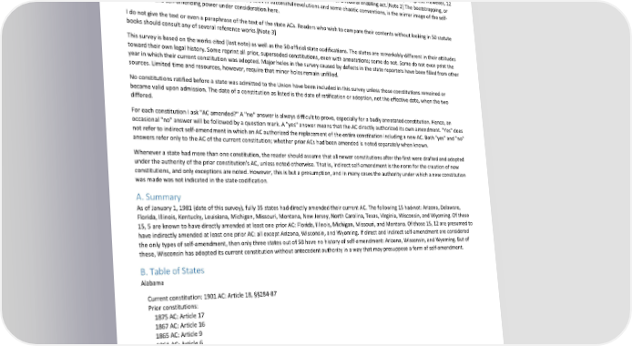 Paradox of Self-Amendment by Peter Suber Appendix 2: Self-Amendment of State Amendment Clauses This appendix identifies the ACs of the 50 state constitutions and indicates whether they have been amended. I include noteworthy features of the ACs, their histories, or their case law, when especially relevant to the issues of this book. Many states have had more than one constitution, and normally the newer ones were proposed and adopted under the authority of the AC of the previous constitution. If the AC of the new constitution differs from the older AC, then indirect self-amendment has occurred. The first constitutions of most states, other than the original 13 colonies, were drafted under enabling legislation passed by Congress. However, 12 states[Note 1] produced their first constitution without the authority either of a prior AC or a federal enabling act.[Note 2] The bootstrapping, or self-creation from nothing, of constitutional power, seen in successful revolutions and some chaotic conventions, is the mirror image of the self- authorized and self-amending power under consideration here. I do not give the text or even a paraphrase of the text of the state ACs. Readers who wish to compare their contents without looking in 50 statute books should consult any of several reference works.[Note 3] This survey is based on the works cited (last note) as well as the 50 official state codifications. The states are remarkably different in their attitudes toward their own legal history. Some reprint all prior, superseded constitutions, even with annotations; some do not. Some do not even print the year in which their current constitution was adopted. Major holes in the survey caused by defects in the state reporters have been filled from other sources. Limited time and resources, however, require that minor holes remain unfilled. No constitutions ratified before a state was admitted to the Union have been included in this survey unless those constitutions remained or became valid upon admission. The date of a constitution as listed is the date of ratification or adoption, not the effective date, when the two differed. For each constitution I ask "AC amended?" A "no" answer is always difficult to prove, especially for a badly annotated constitution. Hence, an occasional "no" answer will be followed by a question mark. A "yes" answer means that the AC directly authorized its own amendment. "Yes" does not refer to indirect self-amendment in which an AC authorized the replacement of the entire constitution including a new AC. Both "yes" and "no" answers refer only to the AC of the current constitution; whether prior ACs had been amended is noted separately when known. Whenever a state had more than one constitution, the reader should assume that all newer constitutions after the first were drafted and adopted under the authority of the prior constitution's AC, unless noted otherwise. That is, indirect self-amendment is the norm for the creation of new constitutions, and only exceptions are noted. However, this is but a presumption, and in many cases the authority under which a new constitution was made was not indicated in the state codification. A. Summary As of January 1, 1981 (date of this survey), fully 35 states had directly amended their current AC. The following 15 had not: Arizona, Delaware, Florida, Illinois, Kentucky, Louisiana, Michigan, Missouri, Montana, New Jersey, North Carolina, Texas, Virginia, Wisconsin, and Wyoming. Of these 15, 5 are known to have directly amended at least one prior AC: Florida, Illinois, Michigan, Missouri, and Montana. Of those 15, 12 are presumed to have indirectly amended at least one prior AC: all except Arizona, Wisconsin, and Wyoming. If direct and indirect self-amendment are considered the only types of self-amendment, then only three states out of 50 have no history of self-amendment: Arizona, Wisconsin, and Wyoming. But of these, Wisconsin has adopted its current constitution without antecedent authority in a way that may presuppose a form of self-amendment. B. Table of States Alabama Current constitution: 1901 AC: Article 18, ยงยง284-87 Prior constitutions: 1875 AC: Article 17 1867 AC: Article 16 1865 AC: Article 9 1861 AC: Article 6 1829 AC: Article 6 AC amended? Yes. August 2, 1933. Comment. The AC contains a clause completely entrenching the rule that representation in the legislature shall be based on population. The entrenching language is the most complete and explicit in any American constitution: "such...shall not be changed by constitutional amendment." Yet for a case holding that the entrenchment clause may itself be amended or repealed, and that the AC is no more privileged from amendment than any other section of the constitution, see Opinion of Justices, 263 Ala. 158, 81 So.2d 881 (1955). Alaska Current constitution: 1956 AC: Article 13 178