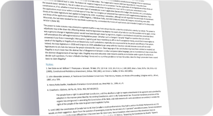 Paradox of Self-Amendment by Peter Suber In some reflexive hierarchies a form of circuitous self-amendment is sometimes possible. Stated broadly, the power to make statutes, for example, has some limited authority to amend the powers that can amend statutes. A legislature can overrule a court's interpretation of one of its statutes. It can actually disband, limit the jurisdiction, or impeach the members of most courts within its jurisdiction. While it cannot reverse a court's interpretation of the constitution or a court's decision to strike down a statute on constitutional grounds, it can avenge and deter such decisions. Moreover, in the federal and most state systems, the constitutional AC is supplemented by statutes that govern the incidental processes of amendment. These statutes give legislatures slightly more control over the constitutional basis of the power to make statutes, which supplements their control over the statutory and common law rules governing that power. In a similar vein, if an AC requires the legislature to call a constitutional convention when a petition of a certain type is received, then despite the mandatory constitutional language it has an operational discretion to refuse, knowing that courts will not order it to take action. This happened in Iowa in 1920 (see Appendix 2). It may also have happened at the federal level in 1929. The federal AC requires Congress to call a convention "on the application of the legislatures of two thirds of the several states" (Article V). The AC is silent on such questions as whether the applications must call for a particular amendment to the constitution or, if so, whether it must be the same type of amendment in each application (balance the budget, ban abortion, etc.), and whether the applications must occur within a certain span of time. Nor has Congress yet answered these questions with supplementary legislation. Two- thirds of the state legislatures had applied to Congress by 1929, requesting a convention, although not all requested the same type of amendment and three of the applications dated back to 1788 (Virginia), 1789 (New York), and 1833 (Alabama).[Note 29] Congress did nothing, even after Wisconsin, the last state needed for the two-thirds supermajority, summarized the history of applications and reminded Congress of its duty under Article V.[Note 30] The power to make statutes may attempt to augment itself in a way that is impermissible under the constitution, namely, by statute. The power to adjudicate may strike down the offending statute. And the legislature may deprive the courts of jurisdiction over the question and try again. In that way a genuine change in legislative power would have been brought about by legislation, despite a constitutional obstacle that prevented direct self-amendment (for self-augmentation) of the legislative power. Whether such a change is "actually" illegal is a question that can only be answered if one finds it meaningful. Many jurists, typically just those most likely to affirm Hart's acceptance theory, would find it meaningless to speak of the legality or illegality of an act beyond any court's jurisdiction, especially one acquiesced in by the people and officials of the system. Indeed, the Iowa legislature in 1920 and Congress in 1929 undoubtedly got away with their inaction not only because courts will not order legislatures to act, but also because the people tolerated the inaction. Clear language of the constitution may have been violated or evaded, but illegality is much more than the abstract fact of disagreement between conduct and prescriptive language, just as inconsistency in law is more than the abstract disagreement of two legal rules. Illegality may exist only when determined to exist by an institution under a grant of authority to decide such questions. If a tree is felled in the King's forest and no court has jurisdiction to hear the action, does the King's prosecutor have a sound basis to claim illegality? Notes 1. See State ex rel. William T. Thompson v. Winnett, 78 Neb. 379, 110 N.W. 1113, 10 L.R.A.(n.s.) 149 (1907), West v. State, 50 Fla. 154, 39 So. 412 (1905), Constitutional Prohibitory Amendment, 24 Kan. 700 (1881), and Green v. Weller, 32 Miss. 650 (1856). 2. John Alexander Jameson, A Treatise on Constitutional Conventions: Their History, Powers, and Modes of Proceeding, Callaghan and Co., 4th ed., 1887, at p. 559. 3. Henry Rottschaefer, Handbook of American Constitutional Law, West Pub. Co., 1939, at p. 8. 4. Crawford v. Gilchrist, 64 Fla. 41, 59 So. 963, 967-68 (1912): The people have a right to amend their Constitution, and they also have a right to require amendments to be agreed to and submitted for adoption in the manner prescribed by the existing Constitution, which is the fundamental law. If essential mandatory provisions of the organic law are ignored in amending the Constitution of the State, and vital elements of a valid amendment are omitted, it violates the right of the people of the state to government regulated by law. 5. Until 1982 the constitution of Canada had no AC that Canadians could use themselves; they had to petition the British Parliament to act, if it would, on their suggestion. Apart from the question of sovereignty raised by the omission of a "patriated" amendment power, formal amendment for Canadians was simply more difficult than it has ever been for Americans. Hence Canadians relied even more than Americans have on "unofficial" methods of amendment. One such amendment is well-treated by J.R. Mallory, "Amending the Constitution by Stealth," Queen's Quarterly, 82 (1979) 394-401. 6. See 158 A.L.R. 512. 7. In Section 7.B I quoted Hart to the effect that contracts and treaties bind only if made within a system containing a rule which says that they bind. This may be called the irreflexive view of contract: some extrinsic rule is needed to make the intrinsic elements of a contract binding between the parties. On the other hand, the 