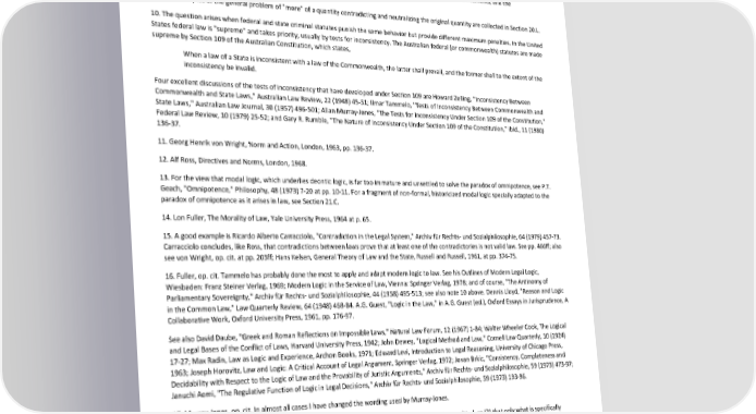 Paradox of Self-Amendment by Peter Suber hold that the very premises of a legal system can be erected by contract must also hold, at least for that primordial covenant, the reflexive view of contract. 8. See Appendix 2. The Pennsylvania and Hawaii amendments merely renumbered the AC. The Minnesota amendment renumbered and reworded the AC but without intending to change it substantively. The North Dakota amendment merely rearranged the articles of the constitution, though with one effect that a court might find significant: the AC was put in the article on legislative power. North Dakota is now the only state in the country that "classifies" its amendment power in effect as a legislative power. The classification could influence future court decisions on the applicability of normal parliamentary procedures to amendment deliberations, the permissibility of "legislative" amendments, and the permissibility of an executive veto, to name just three. 9. More examples of the general problem of "more" of a quantity contradicting and neutralizing the original quantity are collected in Section 20.L. 10. The question arises when federal and state criminal statutes punish the same behavior but provide different maximum penalties. In the United States federal law is "supreme" and takes priority, usually by tests for inconsistency. The Australian federal (or commonwealth) statutes are made supreme by Section 109 of the Australian Constitution, which states, When a law of a State is inconsistent with a law of the Commonwealth, the latter shall prevail, and the former shall to the extent of the inconsistency be invalid. Four excellent discussions of the tests of inconsistency that have developed under Section 109 are Howard Zelling, "Inconsistency Between Commonwealth and State Laws," Australian Law Review, 22 (1948) 45-51; Ilmar Tammelo, "Tests of Inconsistency Between Commonwealth and State Laws," Australian Law Journal, 30 (1957) 496-501; Allan Murray-Jones, "The Tests for Inconsistency Under Section 109 of the Constitution," Federal Law Review, 10 (1979) 25-52; and Gary R. Rumble, "The Nature of Inconsistency Under Section 109 of the Constitution," ibid., 11 (1980) 136-37. 11. Georg Henrik von Wright, Norm and Action, London, 1963, pp. 136-37. 12. Alf Ross, Directives and Norms, London, 1968. 13. For the view that modal logic, which underlies deontic logic, is far too immature and unsettled to solve the paradox of omnipotence, see P.T. Geach, "Omnipotence," Philosophy, 48 (1973) 7-20 at pp. 10-11. For a fragment of non-formal, historicized modal logic specially adapted to the paradox of omnipotence as it arises in law, see Section 21.C. 14. Lon Fuller, The Morality of Law, Yale University Press, 1964 at p. 65. 15. A good example is Ricardo Alberto Carracciolo, "Contradiction in the Legal System," Archiv für Rechts- und Sozialphilosophie, 64 (1979) 457-73. Carracciolo concludes, like Ross, that contradictions between laws prove that at least one of the contradictories is not valid law. See pp. 466ff; also see von Wright, op. cit. at pp. 203ff; Hans Kelsen, General Theory of Law and the State, Russell and Russell, 1961, at pp. 374-75. 16. Fuller, op. cit. Tammelo has probably done the most to apply and adapt modern logic to law. See his Outlines of Modern Legal Logic, Wiesbaden: Franz Steiner Verlag, 1969; Modern Logic in the Service of Law, Vienna: Springer Verlag, 1978; and of course, "The Antinomy of Parliamentary Sovereignty," Archiv für Rechts- und Sozialphilosophie, 44 (1958) 495-513; see also note 10 above. Dennis Lloyd, "Reason and Logic in the Common Law," Law Quarterly Review, 64 (1948) 468-84. A.G. Guest, "Logic in the Law," in A.G. Guest (ed.), Oxford Essays in Jurisprudence, A Collaborative Work, Oxford University Press, 1961, pp. 176-97. See also David Daube, "Greek and Roman Reflections on Impossible Laws," Natural Law Forum, 12 (1967) 1-84; Walter Wheeler Cook, The Logical and Legal Bases of the Conflict of Laws, Harvard University Press, 1942; John Dewey, "Logical Method and Law," Cornell Law Quarterly, 10 (1924) 17-27; Max Radin, Law as Logic and Experience, Archon Books, 1971; Edward Levi, Introduction to Legal Reasoning, University of Chicago Press, 1963; Joseph Horovitz, Law and Logic: A Critical Account of Legal Argument, Springer Verlag, 1972; Jovan Brkic, "Consistency, Completeness and Decidability with Respect to the Logic of Law and the Provability of Juristic Arguments," Archiv für Rechts- und Sozialphilosophie, 59 (1973) 473-97; Januchi Aomi, "The Regulative Function of Logic in Legal Decisions," Archiv für Rechts- und Sozialphilosophie, 59 (1973) 193-96. 17. Murray-Jones, op. cit. In almost all cases I have changed the wording used by Murray-Jones. 18. The deontic test may rely on two alternative theories: (1) that whatever is not forbidden is permitted, or (2) that only what is specifically permitted is permitted (or that whatever is not permitted is forbidden). The former view was embodied in the notation and equivalencies introduced in the text early in Section 12.C. For a defense of the latter as the correct legal position, see Ronald Moore, "Legal Permission," Archiv für Rechts- und Sozialphilosophie, 59 (1973) 327-46. 19. Fuller, op. cit. at p. 66. Eduardo Garcia Maynez asks the same question, and is more willing to answer that the situation described amounts to a contradiction, in "Some Considerations on the Problem of Antinomies in the Law," Archiv für Rechts- und Sozialphilosophie, 49, 1 (1963) 1-14, at p. 2. 95