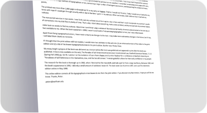 Paradox of Self-Amendment by Peter Suber Preface to the Online Edition On the content and conclusions of this book, I have nothing to add to the print edition. However, since it was published in 1990, I have been embarrassed by its large number of typographical errors. I vowed to reprint the book with corrections and I am very happy to fulfill that vow in this web edition. The typographical errors in the print edition are entirely my responsibility. Peter Lang produced the book from camera-ready copy that I printed myself. I don't have an excuse but I do have a story. The final version of the manuscript was due just as classes were starting for the 1989 academic year. I knew that the preceding summer would be my last chance to polish the prose and correct any errors. I also knew that I'd spend the summer in Maine away from my computer. So I printed the manuscript and took the printout on my vacation. I remember scrutinizing every page with care, marking in pencil a huge number of typographical errors, correcting a large number of inelegant expressions, and deepening the analysis at many points. The printout was more than 1,000 pages and would not fit in my carry-on luggage. That is, it would not fit easily. Today I would carry it lashed to my torso with rope if I could get through security with it. But at the time I put it in my suitcase. When we landed, USAir told me that it had lost my suitcase. The manuscript was due in two weeks. I was fairly sure my suitcase would turn up in a day or two and that I could incorporate my summer's worth of corrections into my disk files in plenty of time. That's why I didn't drop everything, make a new printout, and try to duplicate my summer labors. USAir took six weeks to find my suitcase. Meantime I sent Peter Lang a version of the manuscript hastily skimmed and corrected in the last day or two available to me. When the book appeared in 1990, I wasn't surprised to find surviving typographical errors, but I was embarrassed. Apart from fixing typographical errors, I have made virtually no changes to the text. I may make more substantive changes in the future, but if I do, I will label them clearly as revisions. If I thought that the print edition still had readers, I would make two additions to this web site: (1) an enhanced version of the index to the print edition and (2) a list of the known typographical errors in the print edition. But for now I'll skip these. My essay-length synopsis of the book was delivered as a lecture before the book was published and appeared in print after the book was published. It too is now available on the web, The Paradox of Self-Amendment in American Constitutional Law, Stanford Literature Review, 7, 1-2 (Spring-Fall 1990) pp. 53-78. I wrote it at the invitation of Jean-Pierre Dupuy and Gunther Teubner for a conference at Stanford University on "Paradoxes of Self-Reference in the Humanities, Law, and the Social Sciences." I remain grateful to them for their early confidence in my project. The research for the book is thorough up to 1982, when I finished the first two drafts and took a job far from a large law library. Between 1982 and the book's appearance in 1990, I did only a small amount of additional research. The book went out of print in 1997, and I put this electronic edition online in May 1998. This online edition corrects all the typographical errors known to me from the print edition. If you discover any that remain, I hope you will let me know. Thanks, Peter. [email protected] ix