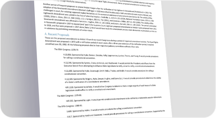 Paradox of Self-Amendment by Peter Suber Appendix 1: Attempts to Amend the Federal Amendment Clause The amendment clause of the federal constitution is Article V. It has never been amended either by authorizing its own modification or by authorizing its replacement in a constitutional convention. Portions of the clause were under the control of sunset clauses inserted by the framers. The amending power was enhanced when the clauses expired in 1808, in effect amending the amending clause by augmenting its power or by revoking limitations on its power (see Section 14). Nothing in U.S. constitutional history comes closer to self-amendment at the federal level than the expiration of these sunset clauses and the limitations on the amending power they represented. Recently Article V has been seen as an obstacle to conservatives who foresee difficulties in passing amendments to prohibit abortion and require a balanced budget, and by liberals who lost the struggle to ratify the Equal Rights Amendment. Hence proposed amendments to Article V have increased recently, though mostly by conservatives. Another period of frequent proposals to amend Article V began after the ratification of the Eighteenth Amendment (Prohibition) in 1919. The adoption of the Nineteenth Amendment (Women's Suffrage) in 1920 intensified the discussion. Both amendments were much criticized, and challenged in court, for violating supposed implied limitations on the content or substance of amendments (see Section 8). The validity of the Eighteenth Amendment was upheld in the face of attack by Hawke v. Smith No. 1, 253 U.S. 221 (1920), National Prohibition Cases, 253 U.S. 350 (1920), Dillon v. Gloss, 256 U.S. 368 (1921), U.S. v. Sprague, 282 U.S. 716 (1931), and Coleman v. Miller, 307 U.S. 433 (1939). The validity of the Nineteenth Amendment was affirmed in Fairchild v. Hughes, 258 U.S. 126 (1922), and Leser v. Garnett, 258 U.S. 130 (1922). The period culminated in Roosevelt's proposal in 1937 to expand (and "pack") the Supreme Court. Eighteen proposed amendments to Article V were proposed from 1911 to 1928, and five were proposed in 1937 alone.[Note 1] Most would have made the amendment process more democratic in procedure, or less so in substance by prohibiting amendments of certain kinds. A. Recent Proposals These are the proposed amendments to Article V from three recent Congresses during a period of important amendment activity. The Equal Rights Amendment was proposed in 1972 with a ratification period of seven years; after a three year extension of the ratification period, it expired unratified June 30, 1982. All the following proposals died in their respective judiciary committees without a floor vote. The 95th Congress: 1978-79 H.10,836. Sponsored by Hyde, Dornan, Grassley, Kelly, Logomarsino, Lunken, Thorne, and Young. It would provide procedures for calling a constitutional convention. H.11,546. Sponsored by Symms, Crane, Ashbrook, and MacDonald. It would prohibit the President and officers from the Executive Branch from attempting to influence State legislatures to ratify, or not to ratify, a constitutional amendment. H.11,600. Sponsored by Hyde, Cavanaugh, Smith (Neb.), Traxler, and Walsh. It would provide procedures for calling a constitutional convention. H.12,503. Sponsored by Wiggins, Hyde, Sawyer, Hughes, and Evans (La.). It would provide procedures to determine the validity of a State's ratification of a constitutional amendment. HJR.1110. Sponsored by LaFalce. It would allow Congress to determine that a simple majority of each house of a State legislature could suffice to ratify a constitutional amendment. The 96th Congress: 1979-80. HJR.595. Sponsored by Lujan. It would permit constitutional amendments to be ratified by a nationwide popular referendum. The 97th Congress: 1980-81. S.600. Sponsored by Helms. It would provide procedures for calling a constitutional convention. S.817. Sponsored by Hatch and Deconcini. It would provide procedures for calling a constitutional convention. Supported by the American Bar Association. H.297. Sponsored by Hansen (Ida.). It would give effect to State attempts to rescind ratification of constitutional amendments. H.353. Sponsored by Hyde and Lundgren. It would provide procedures for calling a constitutional convention. HJR.88. Sponsored by Jacobs. It would allow the States to propose amendments to the constitution. B. An historical proposal passed by Congress Only one attempt to amend Article V was among the select group of six proposed amendments that was actually passed by Congress and defeated by the states.[Note 2] It is the so-called Corwin amendment. Without its preamble it read: 172